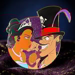 The seventh design in the Dueling Duos series features Tiana and Dr. Facilier face to face. Dr. Facilier has a sinister look on his face while holding his talisman necklace in front of Tiana. Tiana is seen with a stern look in her light blue princess dress. The background has purple recessed metal effect (similar to that on profile-style pins).