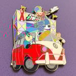 The Goofy Movie series features various characters from the Goofy Movie. The sixth design in the series features Max dressed as a skater popping an ollie in front of Bobby Zimuruski's 'microbus', also known as a Volkswagen Type2 van . PJ is in the passenger seat with a backdrop of the ESPN X-Games stage.