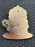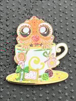 The thirteenth design in the Teacups series features Rapunzel's sidekick, Pascal. Pascal is peering out over the edge of a teacup in his "gingerbread" form with his tongue sticking out. The teabag has a 'Corona' sun on it referencing the Kingdom of Corona derived from the magic gold flower.